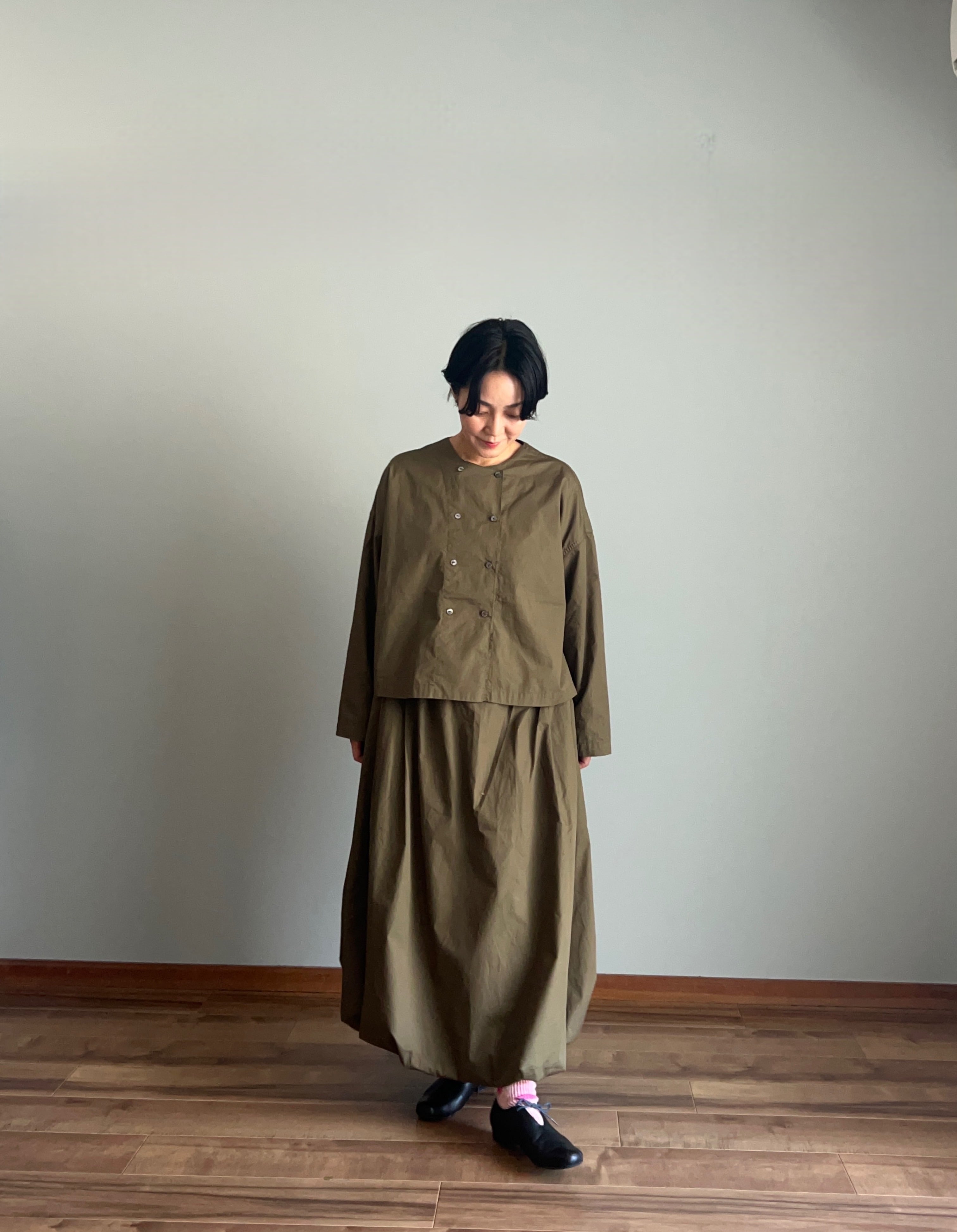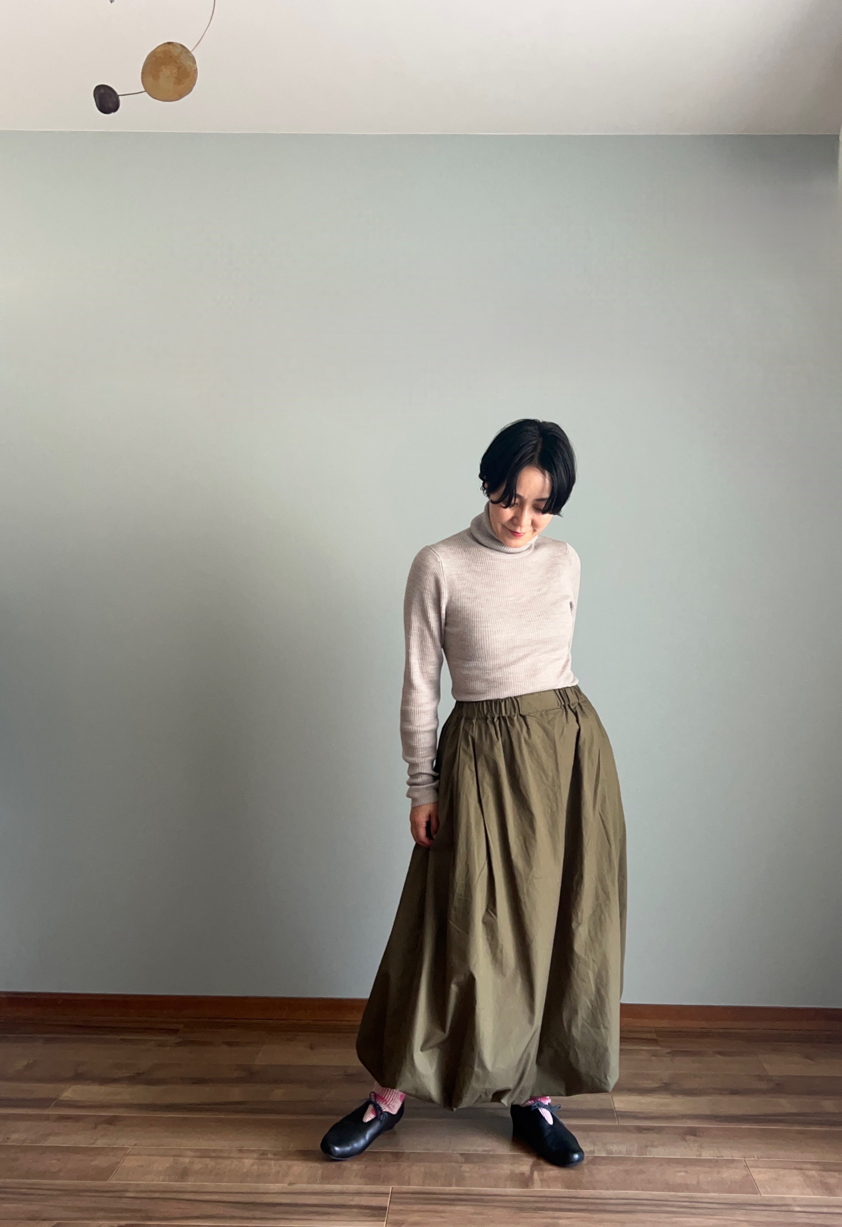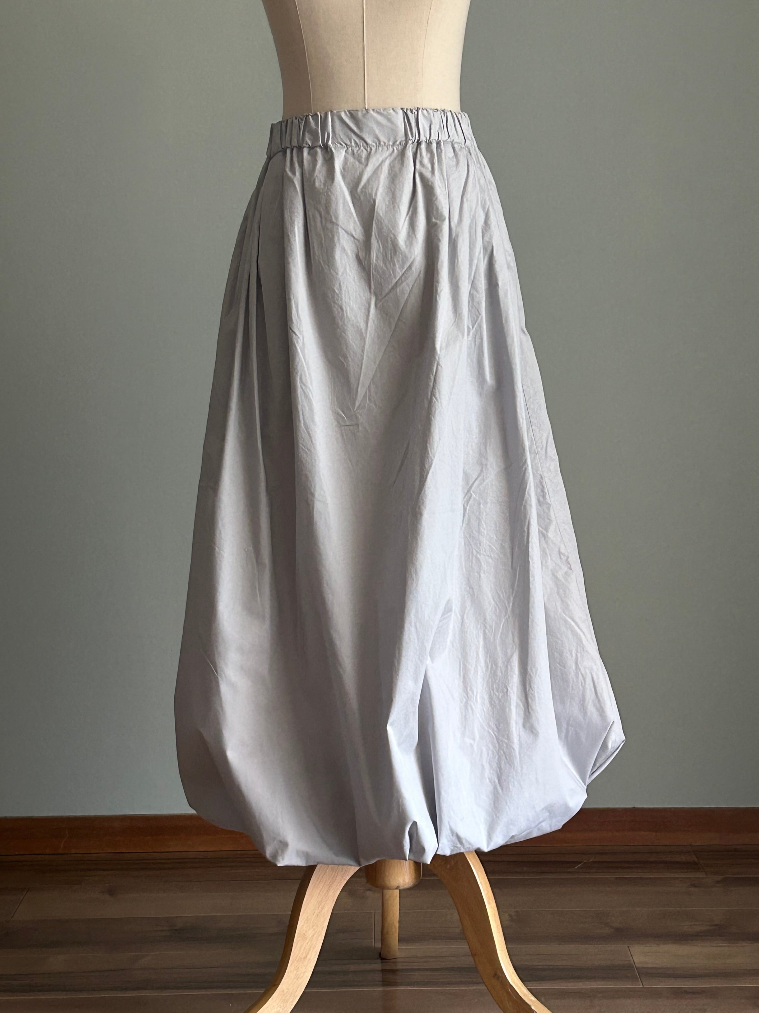 このCotton バルーンスカートは、表地にポプリンコットンを使用し、しっかりした質感と軽やかさを兼ね備えています。裏地には柔らかなローンコットンを採用しており、肌触りが非常に良く、快適な着用感が魅力。暖かさがありながらも軽やかさを演出するこのスカートは、カジュアルな日常使いから特別なシーンまで様々なスタイルにぴったりです。どんなトップスとも自由にコーディネートでき、スタイルの幅が広がります。