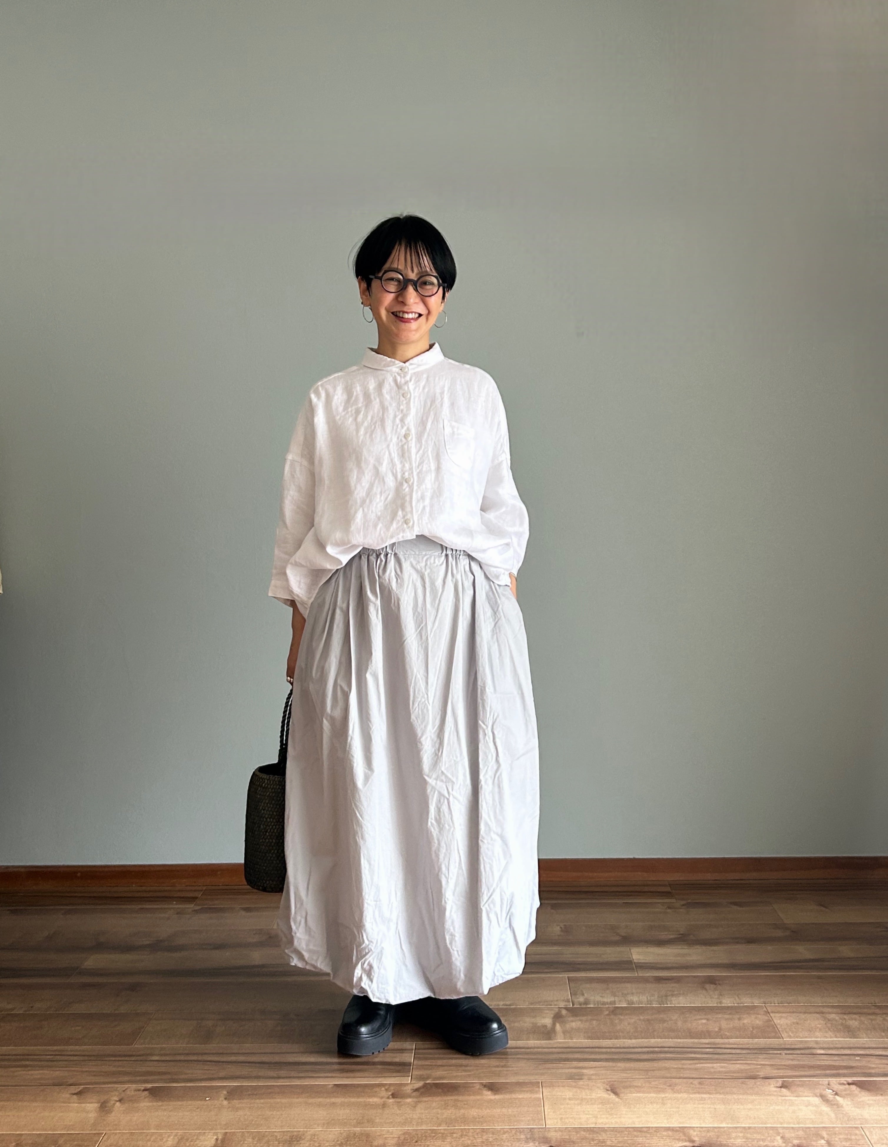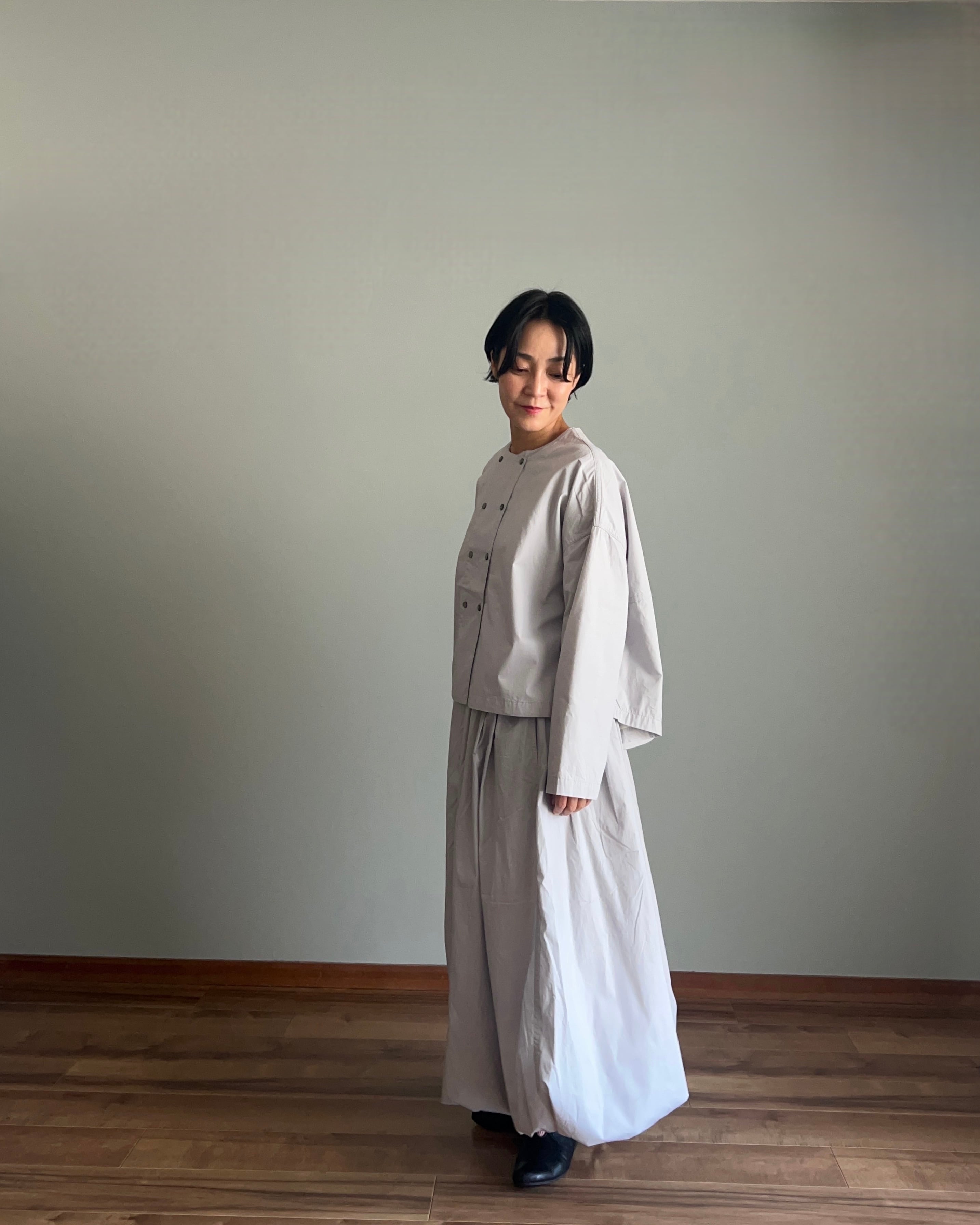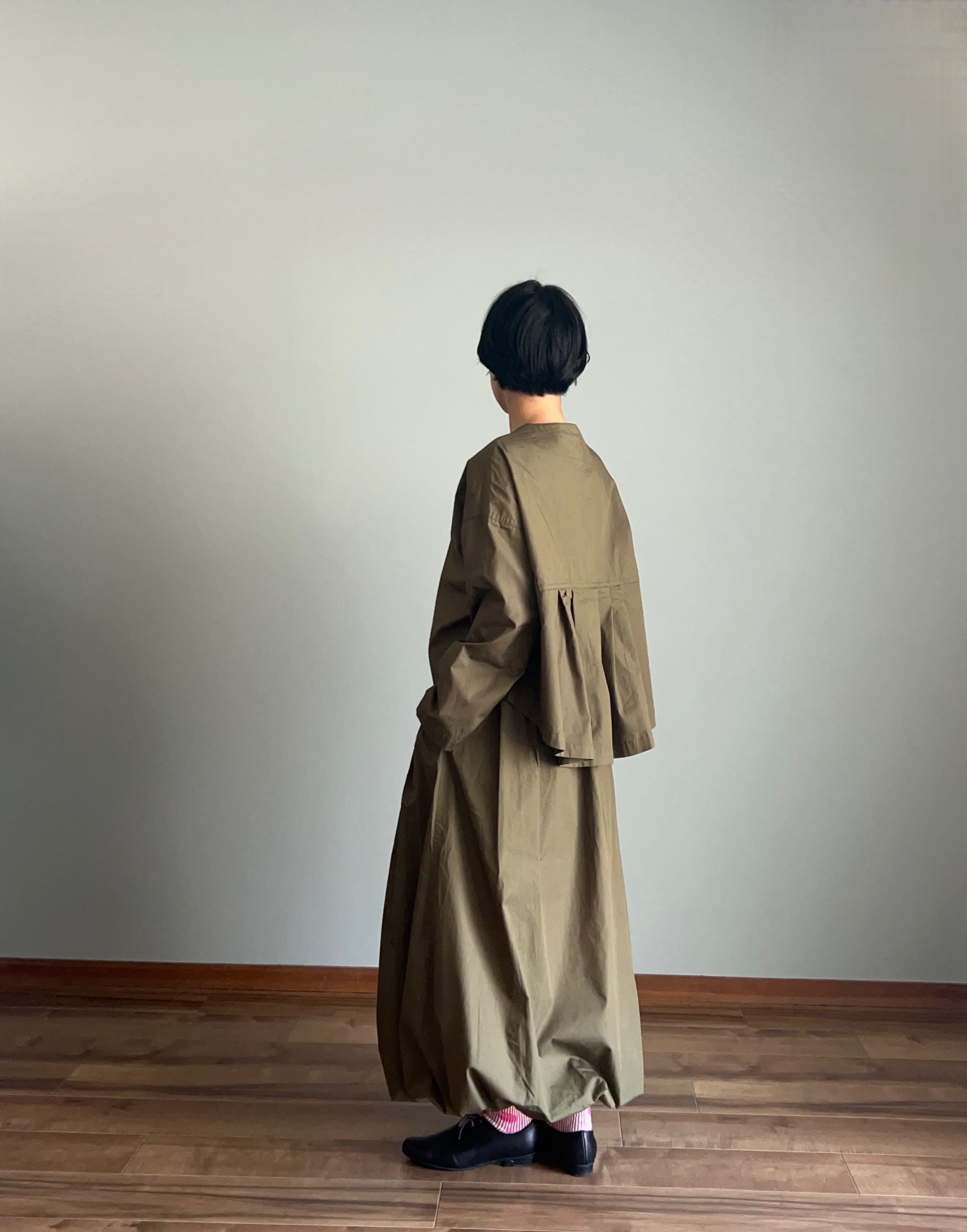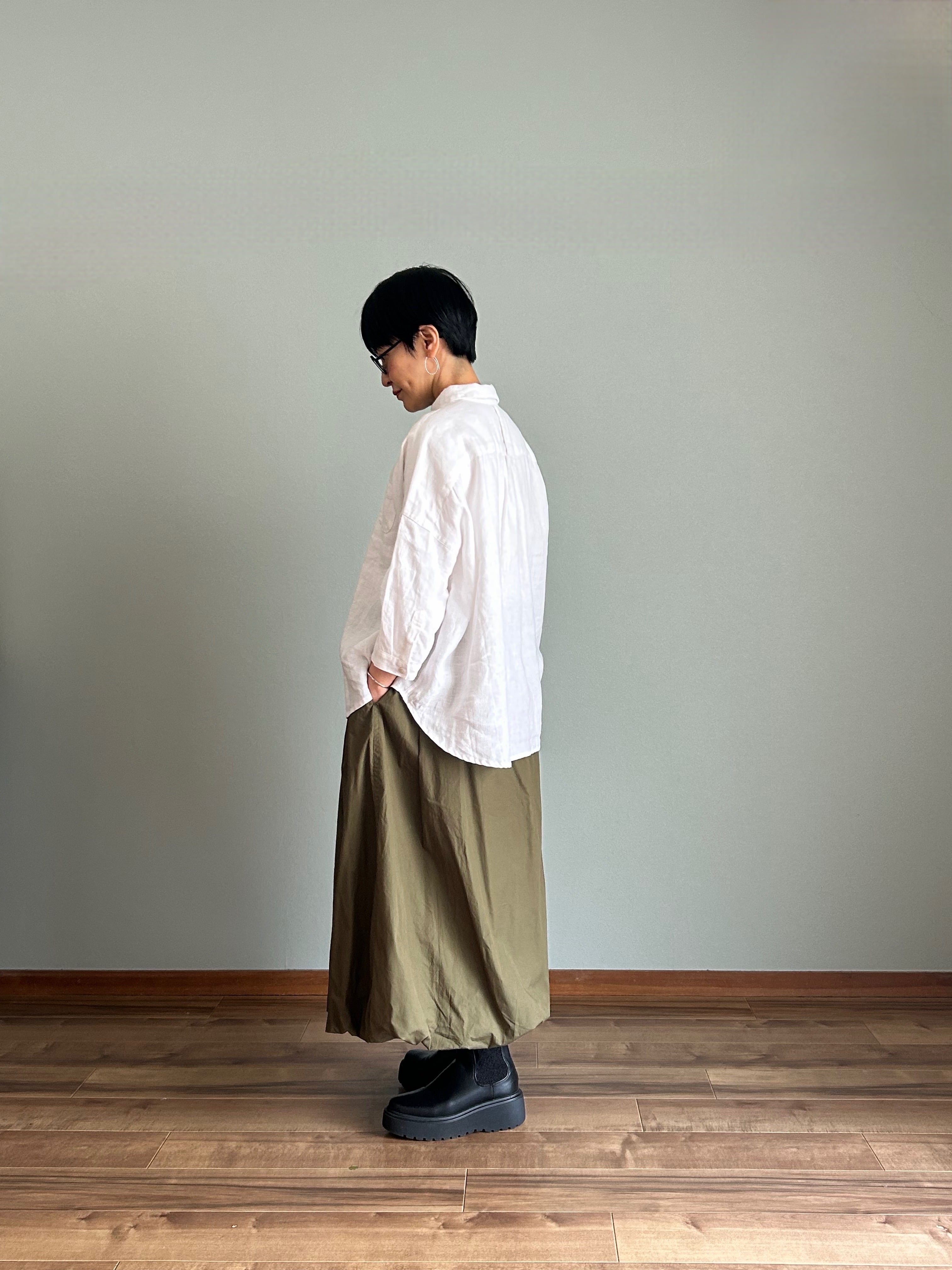 このCotton バルーンスカートは、表地にポプリンコットンを使用し、しっかりした質感と軽やかさを兼ね備えています。裏地には柔らかなローンコットンを採用しており、肌触りが非常に良く、快適な着用感が魅力。暖かさがありながらも軽やかさを演出するこのスカートは、カジュアルな日常使いから特別なシーンまで様々なスタイルにぴったりです。どんなトップスとも自由にコーディネートでき、スタイルの幅が広がります。