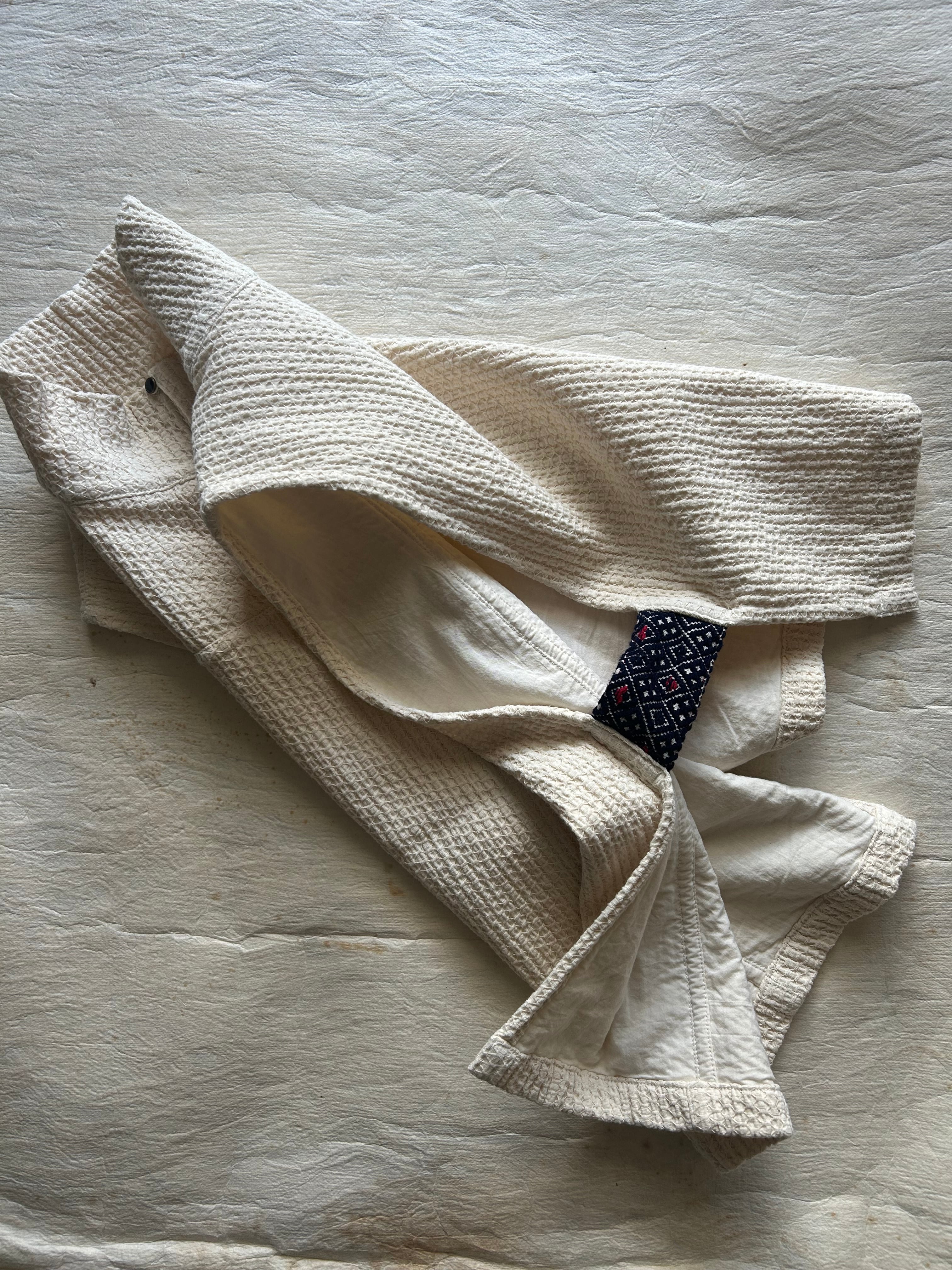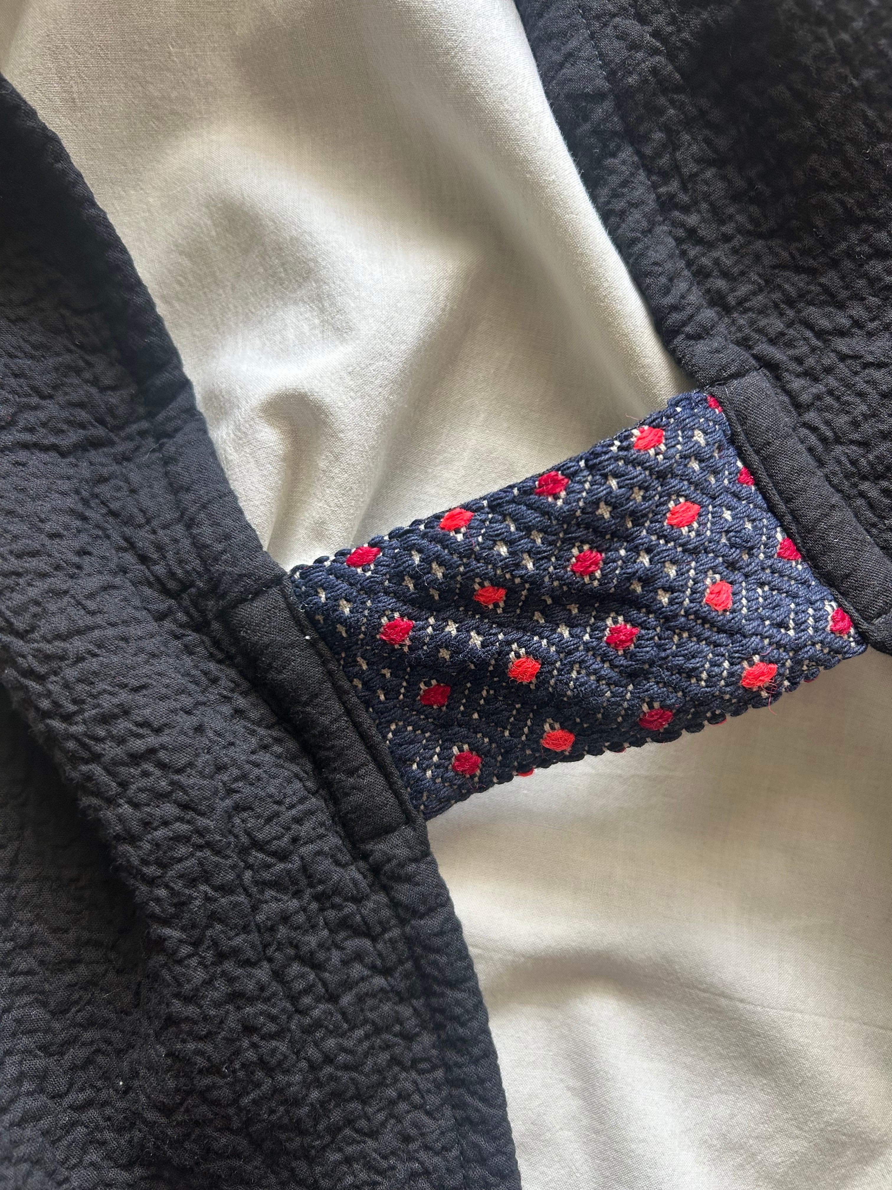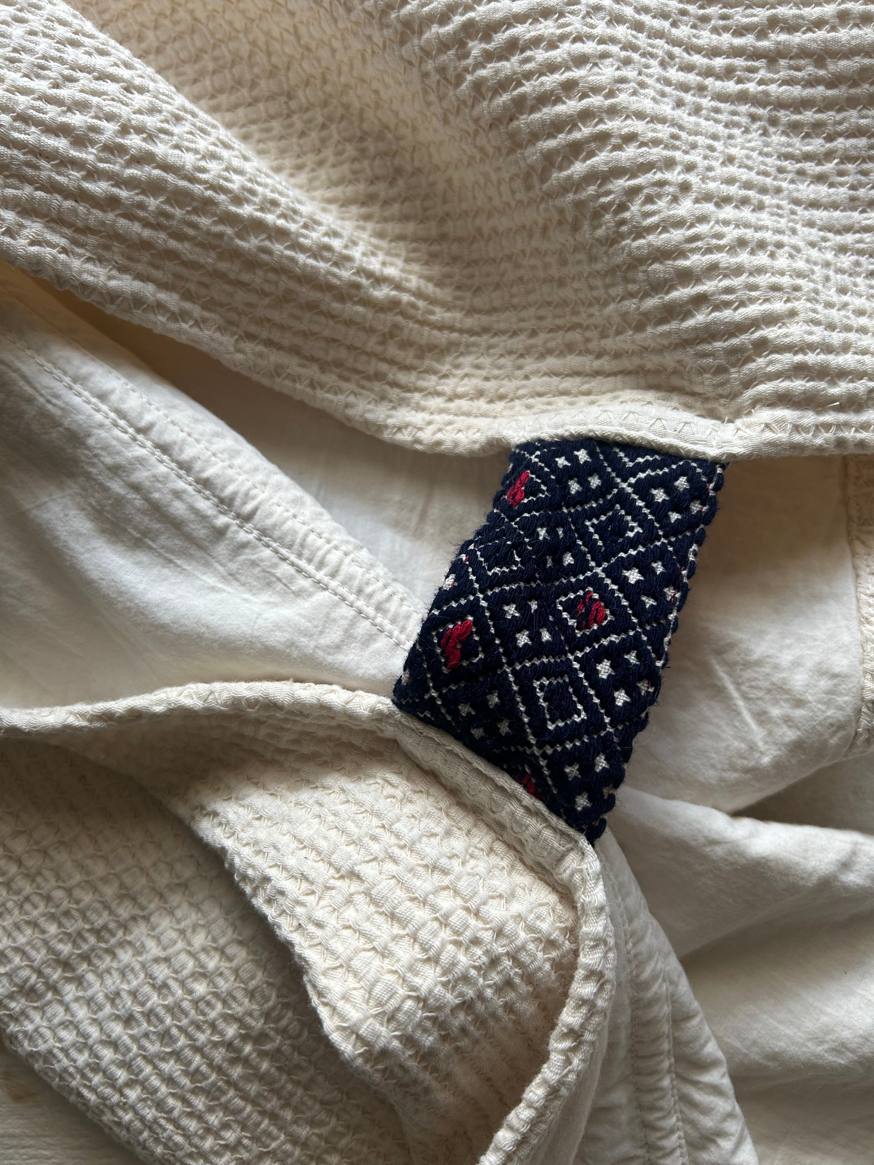 サイドのベルトにはモン族手織りのアンティーク生地を使っています。