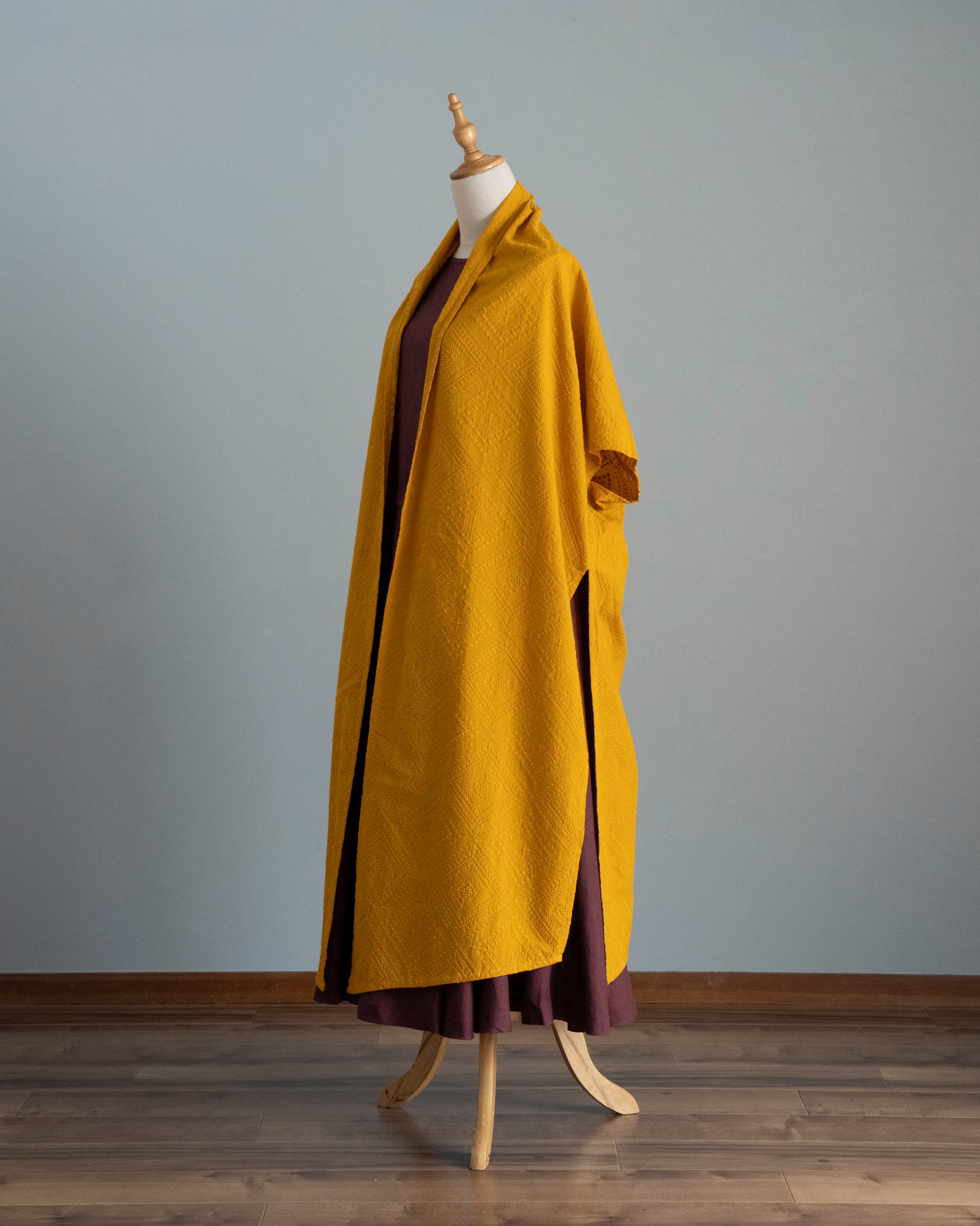 すとんと落ちる縦のラインが印象的で、重ねるだけで装いに雰囲気を添えてくれる一着です。