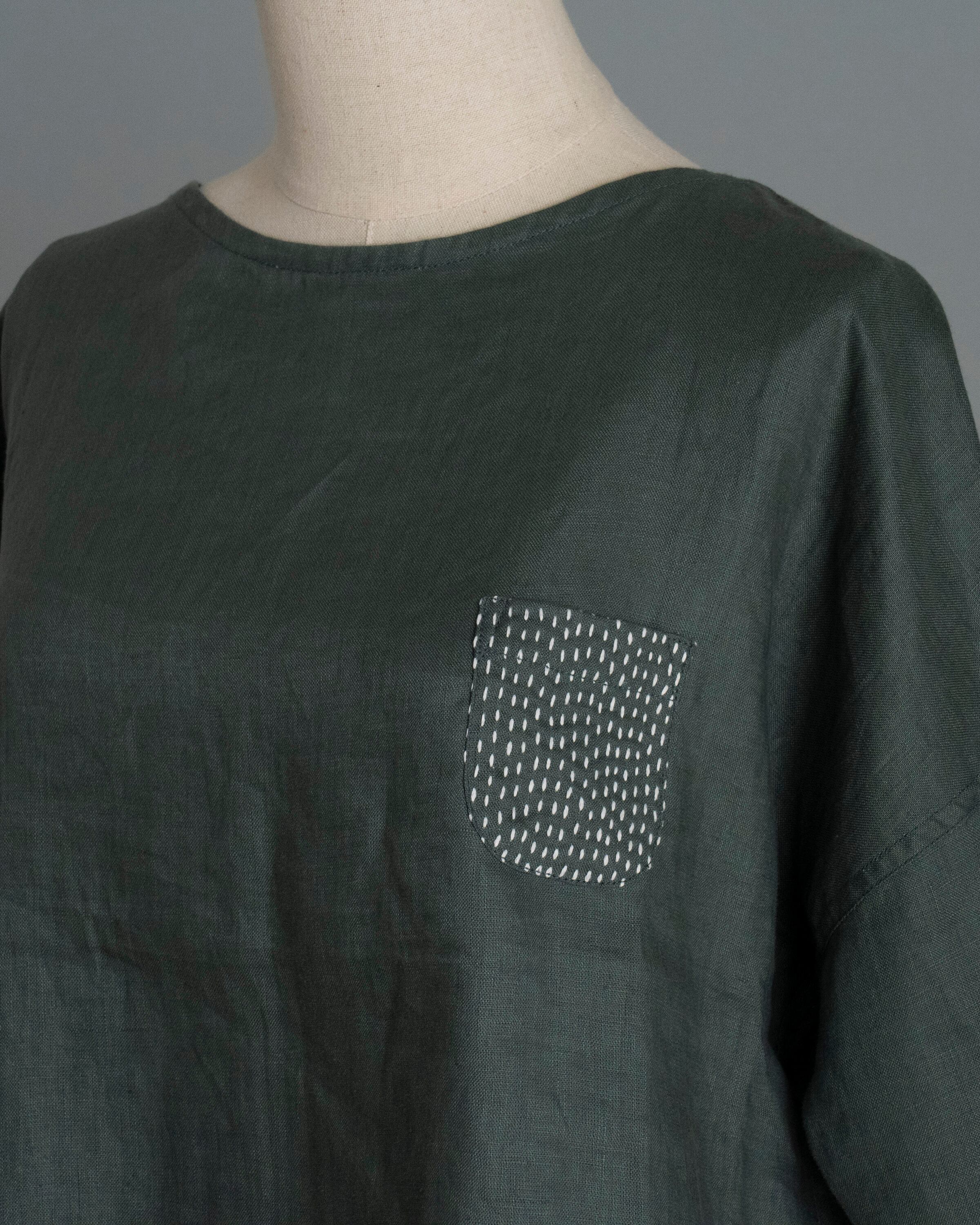 ちくちく手刺繍 七分袖プルオーバー/スモーキーグリーン