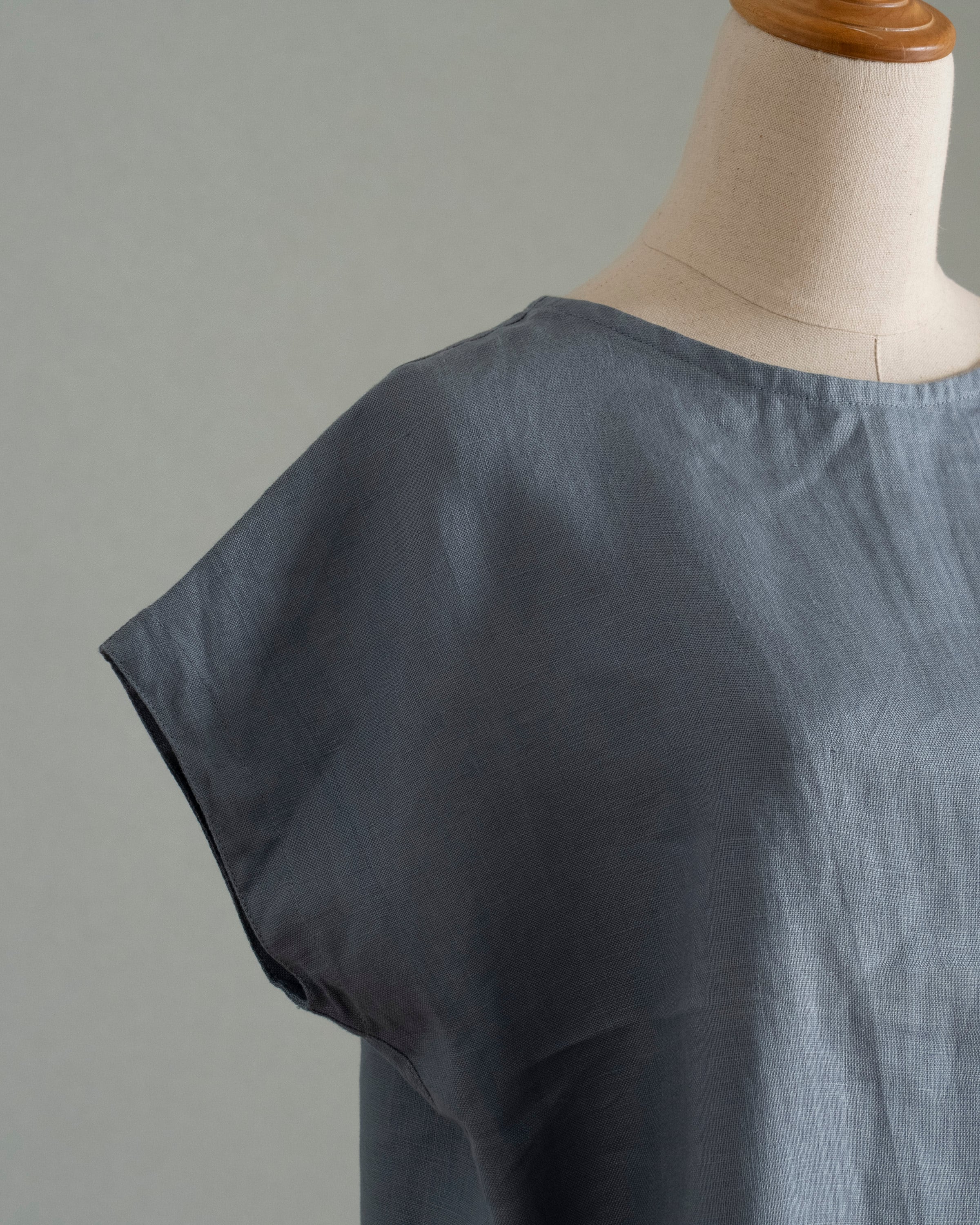 ちくちく手刺繍 フレンチスリーブプルオーバー/ミストブルーグレー