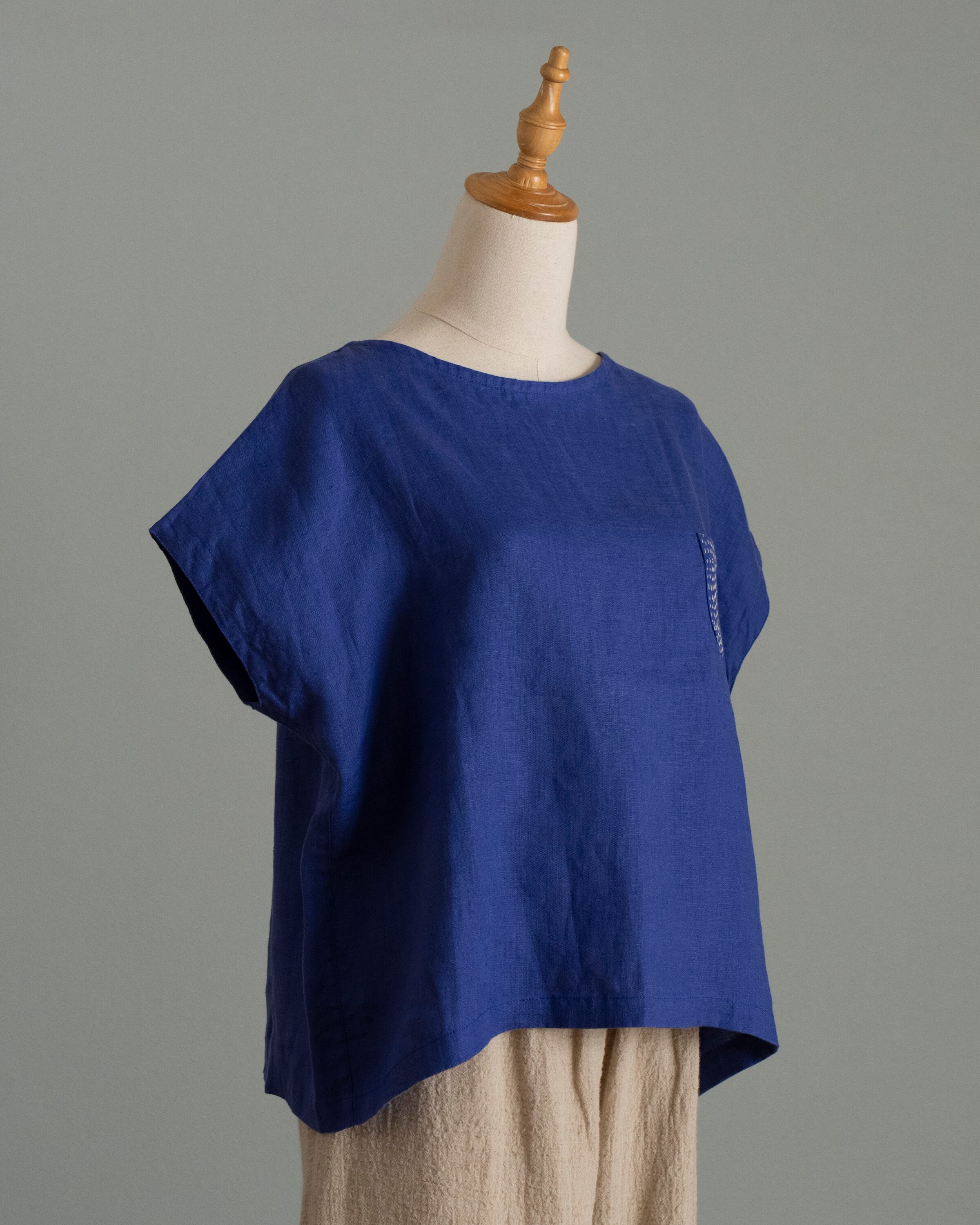 ちくちく手刺繍 フレンチスリーブプルオーバー/ラピスブルー