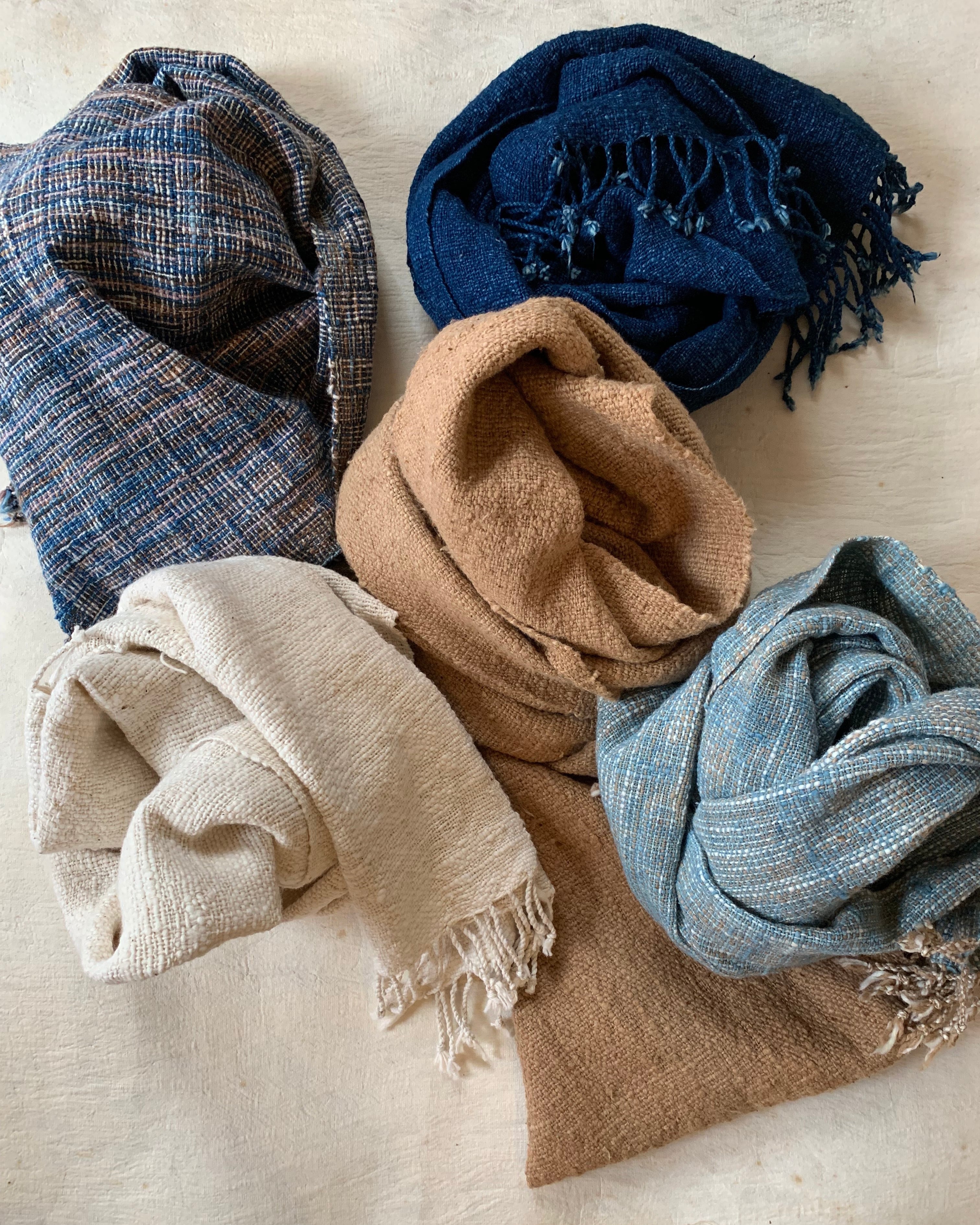 こちらの商品は手紡ぎ、手織りです。